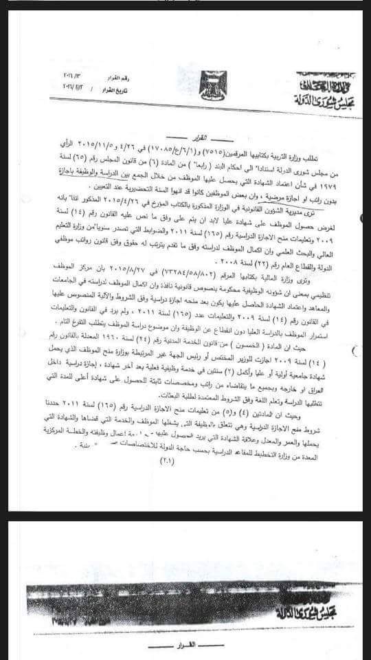 عدم احتساب الشهادات التي يحصل عليها الموظف اثناء الخدمة بدون الحصول على إجازة دراسية