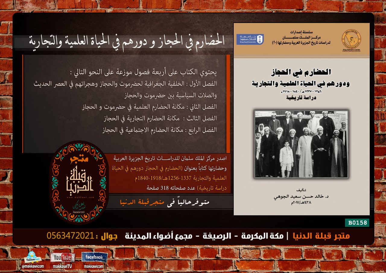 قبلة الدنيا مكة المكرمة On Twitter كتاب الحضارم في الحجاز و دورهم في الحياة العلمية و التجارية متوفرحاليا في متجر قبلة الدنيا عنوان المتجر Https T Co Yfhkahf6vp للمزيد عن الكتاب Https T Co Ptqqlnnwe2 قبلة الدنيا مكة