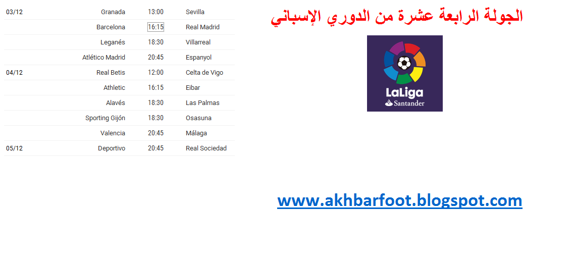 الماسة Foot برنامج الدوري الاسباني 2017 2016 الجولة الرابعة عشرة