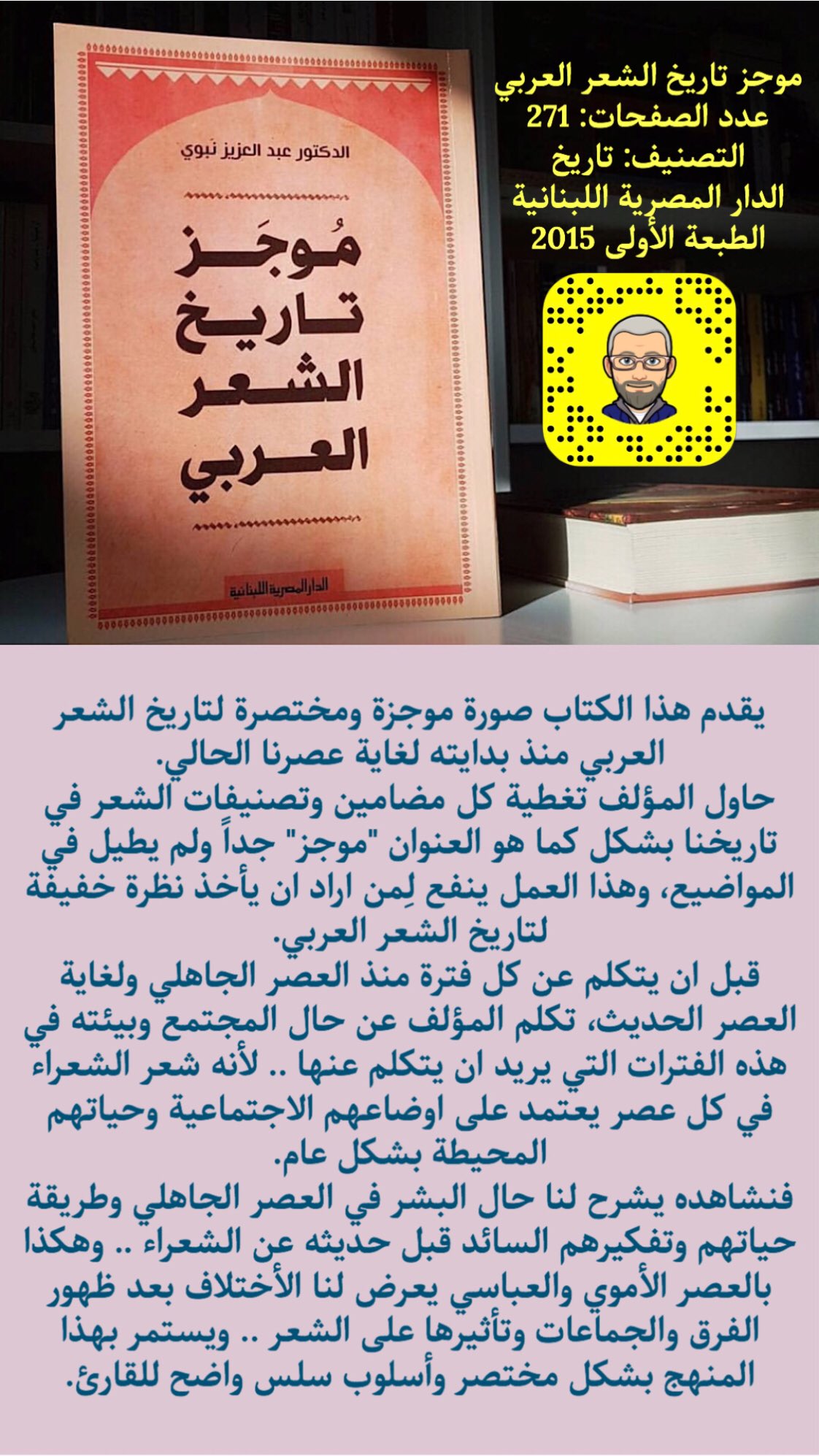 Uzivatel القراءة الخطرة Na Twitteru هذا الكتاب صورة موجزة ومختصرة لتاريخ الشعر العربي منذ بدايته لغاية عصرنا الحالي حاول المؤلف تغطية كل مضامين وتصنيفات الشعر في تاريخنا بشكل كما هو العنوان موجز