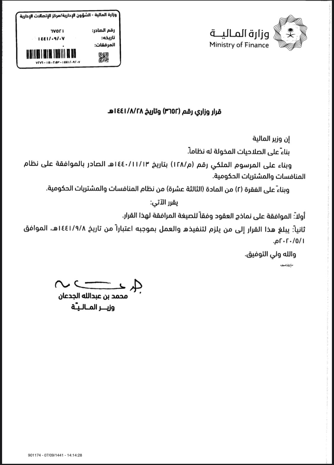 مختارات عدلية On Twitter صدر قرار معالي وزير المالية بالموافقة على نماذج العقود الموحدة للمشتريات الحكومية وفق ا لنظام المنافسات والمشتريات الجديد والتي يبدأ العمل بها اعتبار ا من تاريخ ٨ رمضان 1441هـ