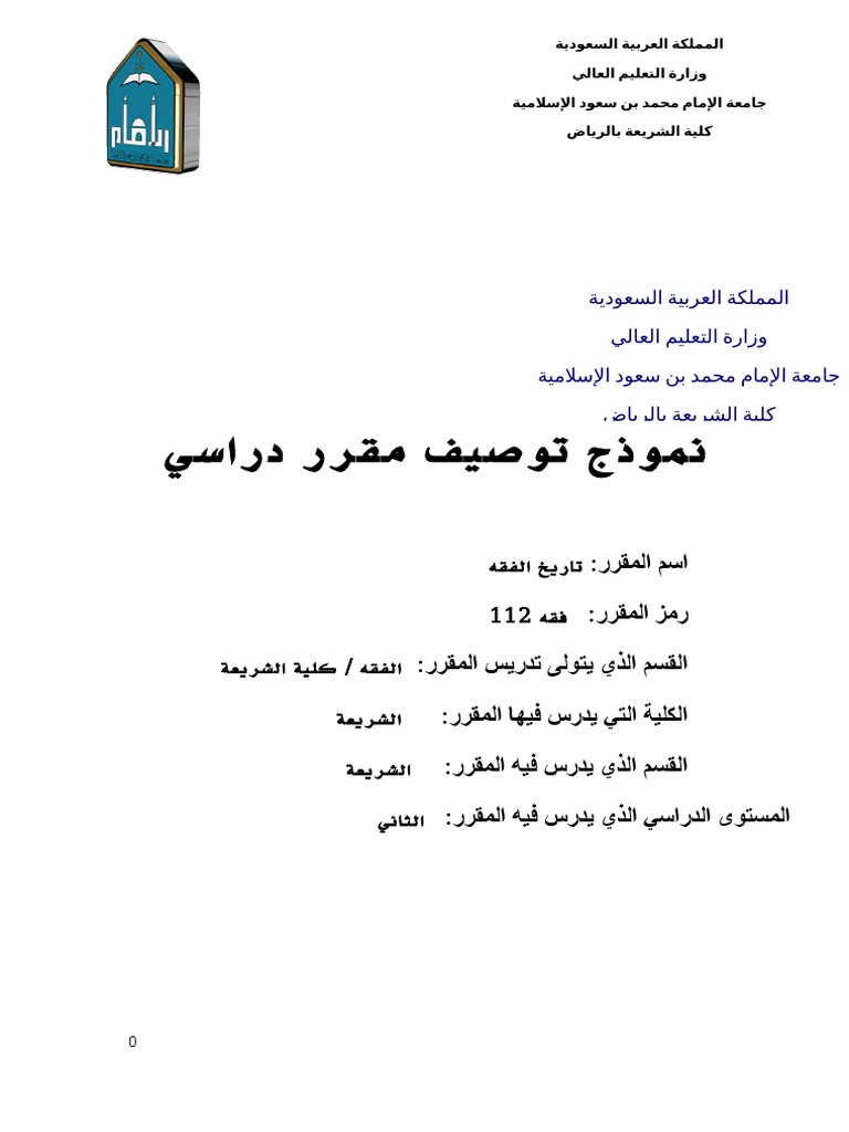 اث مقرر تاريخ فقه 111 للمستوى الثاني اسم املقرر ورمزه فقه 111 اسم األستاذة منال الدغي م عدد ساعات املقرر يف األسبوع 2 كلية الشريعة املستوى ال Pdf Free Download