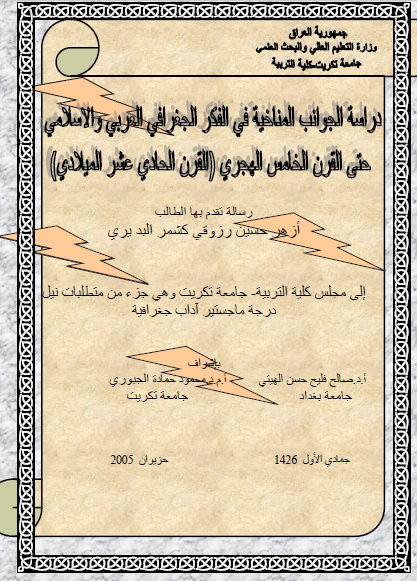 الجغرافيا دراسات و أبحاث جغرافية دراسة الجوانب المناخية في الفكر الجغرافي العربي والإسلامي حتى القرن الخامس الهجري القرن الحادي عشر الميلادي أزهر حسين رزوقي كشمر البدير رسالة ماجستير 2005م