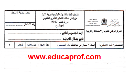 امتحان الكفاءة المهنية لشعبة اللغة الانجليزية لدورة 2017