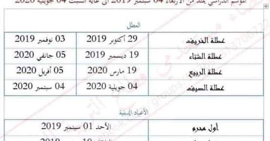 تاريخ العطل و الاعياد الدينية و الوطنية للموسم الدراسي 2020 2019