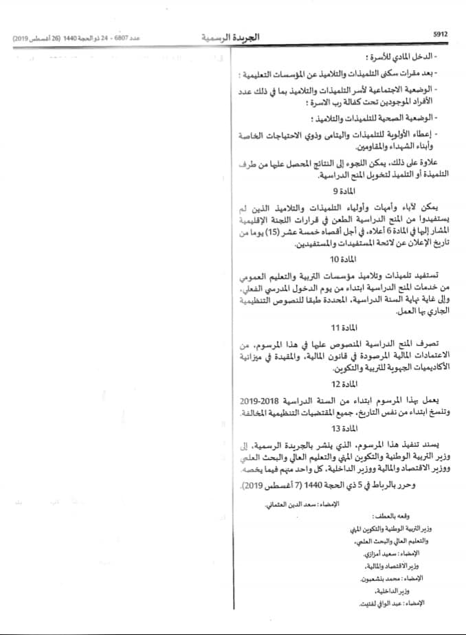 2 دراهم لكل تلميذ وجبة الاطعام المدرسي مرسوم رقم 2 19 333 المتعلق بتحديد أصناف ومقادير المنح الدراسية الخاصة بالأقسام الداخلية بوابة المنح الجامعية