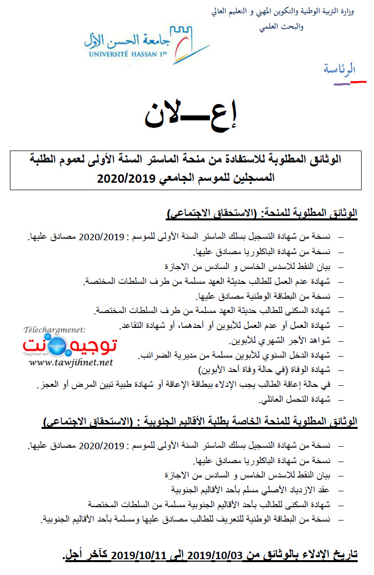 جديد منح الماستر السنة 1 2019 2020 المنحة الجامعية Master منتديات توجيه نت