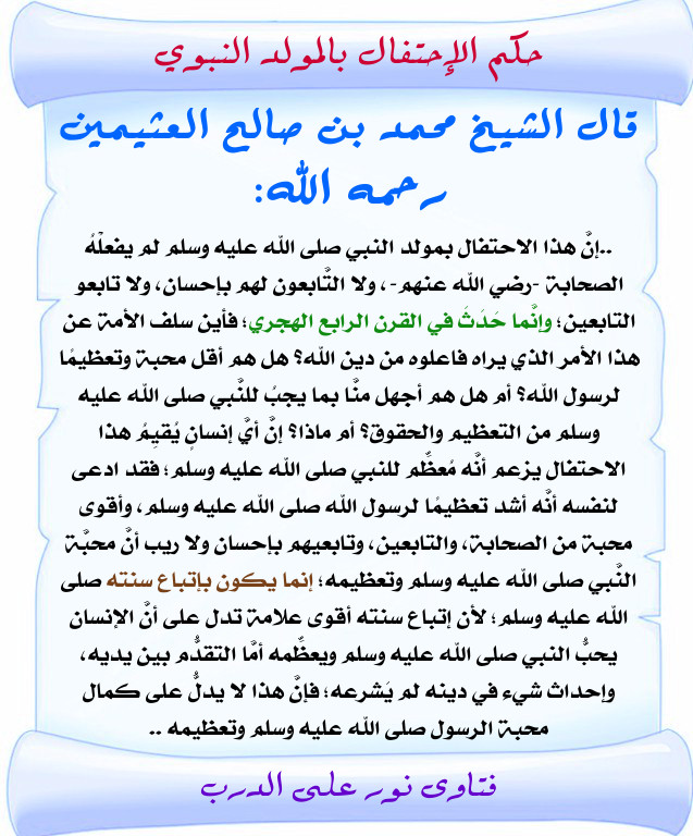 حكم الاحتفال بالمولد النبوي ابن عثيمين موقع محتويات