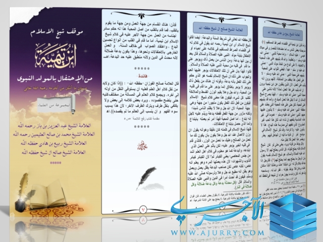 مطوية موقف شيخ الاسلام ابن تيمية من الاحتفال بالمولد النبوي مجموعة من كبار العلماء منتديات الإمام الآجري