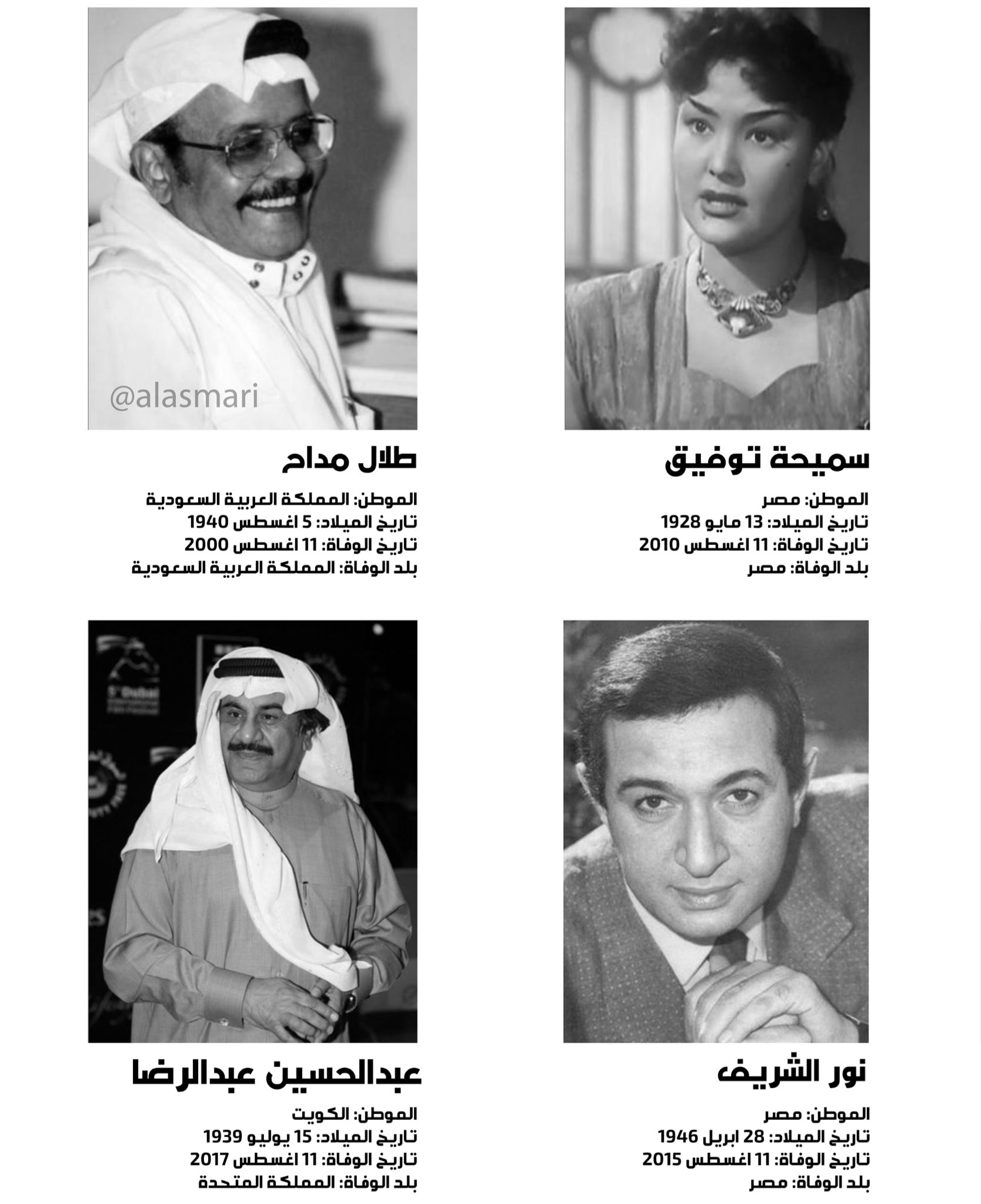 Twitter पर طراد الأسمري العمالقة سميحة توفيق طلال مداح نور الشريف عبدالحسين عبدالرضا جمعهم يوم رحيل واحد اليوم ذكرى وفاتهم 11 أغسطس رحمهم الله ذكرى رحيل طلال مداح Https T Co Qfwc0c1hxx