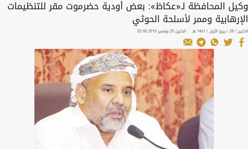 صحيفة عكاظ السعودية تجري حوارا مع بن حبريش وادي حضرموت ممر لأسلحة الحوثي المساء برس