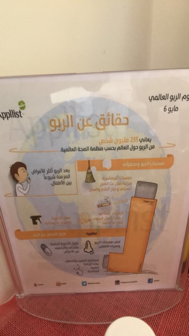 إدارة الصحة المدرسية בטוויטר السلام عليكم تم تفعيل اليوم العالمي للربو تاريخ 1439 5 27 يو م الثلاثاء اذاعة مدرسية وركن مطويات و عرض بوربينت عدد الطالبات 605 43معلمة 23 إدارية Https T Co Astj9p7h2t