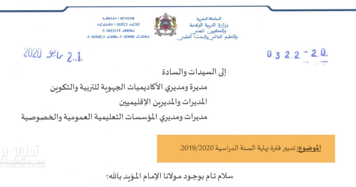 تدبير فترة نهاية السنة الدراسية 2019 2020
